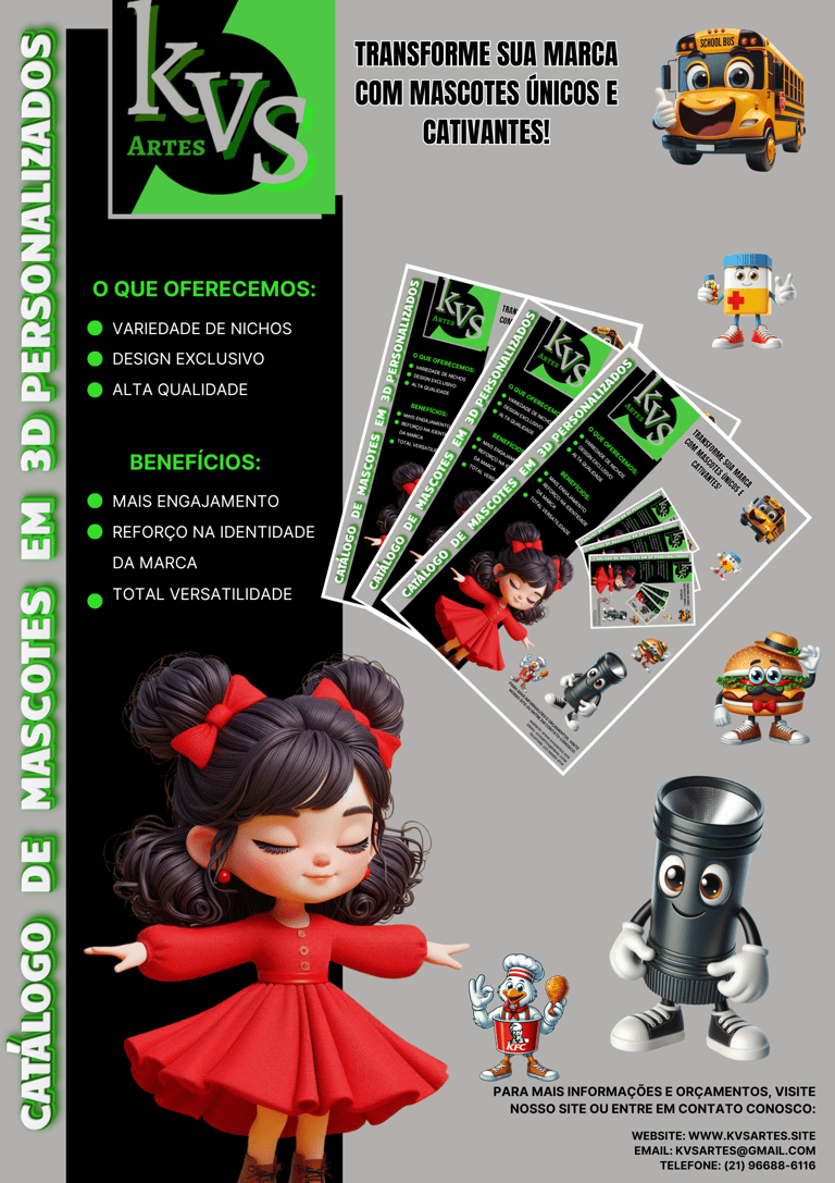 Catálogo de Mascotes em 3D da KVS Artes Design!